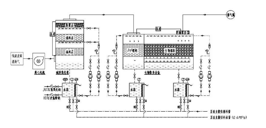 Unit penyentalan biologi gabungan dan penyahbauan penapisan menyepadukan tiga teknologi biologi: penyental biologi, penapisan titisan biologi dan penapisan biologi. Peranti penyahbauan biologi komposit novel ini dibangunkan dengan mensintesis kelebihan ketiga-tiga teknik biologi ini. Gas berbau memasuki zon penyental melalui salur masuk, di mana ia menjalani rawatan awal dengan air atau larutan penyental kimia pekat. Zon penyental ini melengkapkan penyerapan bahan kimia larut air, penyingkiran habuk, dan pelembapan gas berbau. Gas berbau busuk yang tidak dialihkan kemudian teruskan ke zon penapisan katil biofilter berbilang peringkat. Apabila ia melalui lapisan penapis, bahan pencemar berpindah dari fasa gas ke permukaan biofilm: