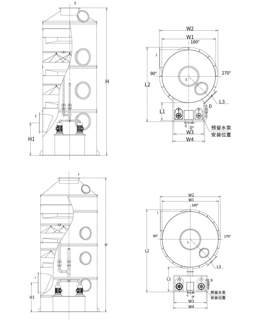 | XL-1000 | 6000-7500m³/j | Φ1000×4380 | 1.5kw | 2 | 2.13-2.66m/s | PP/304/Q235/FRP |